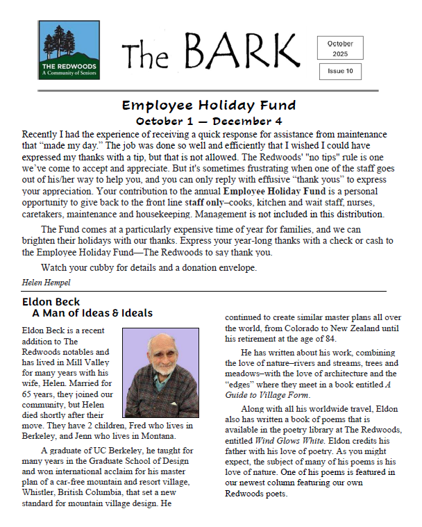 Get your copy of The Review and The Bark for resident stories, events, and community news.